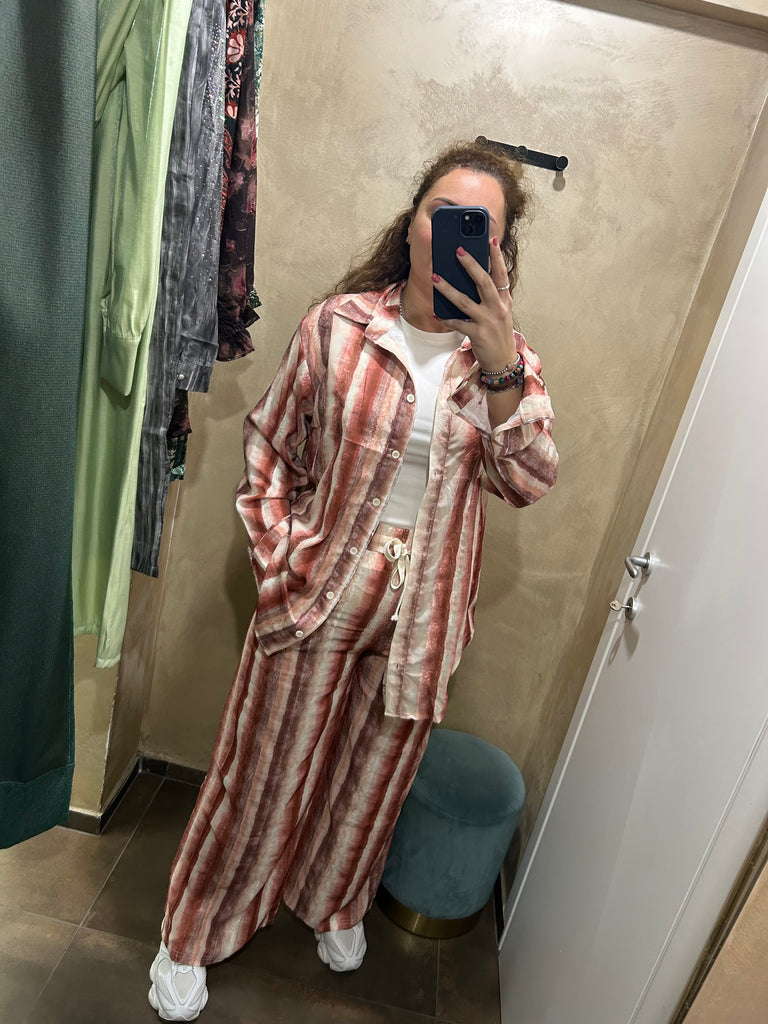 Coordinato pantalone a pala co con elastico in vita a pantalaccio più camicione lungo con bottoni vari colori taglia s/m e m/l