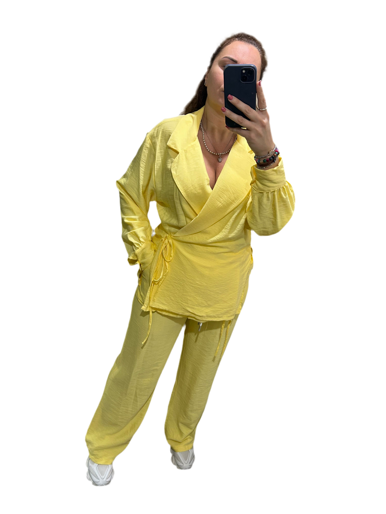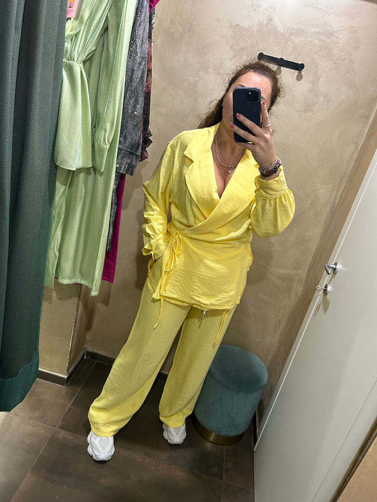Coordinato taglia unica pantalone a pantalaccio con giacca doppio petto vari colori calza da40 a 46 tessuto leggero