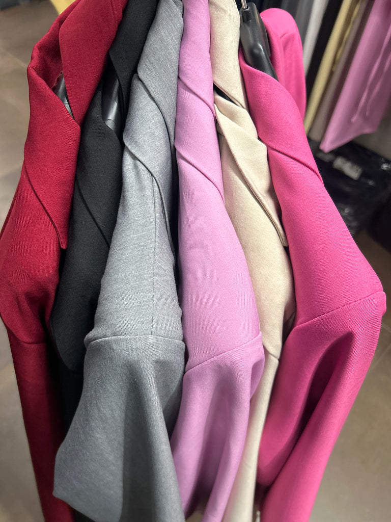 Giacca foderata over con manica larga non avviata con cintura alla vita vari colori calza da 42 a 46 piena