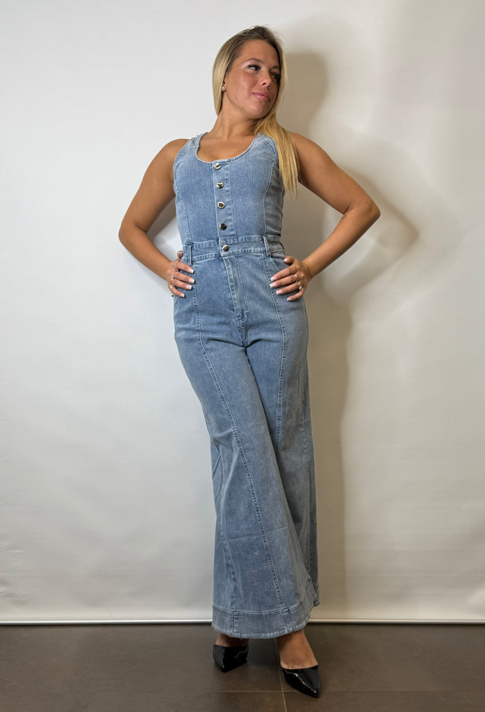 Tuta jeans elastica a giro manica a palazzo taglia s m l prendere taglia giusta in foto indossa taglia s colore unico