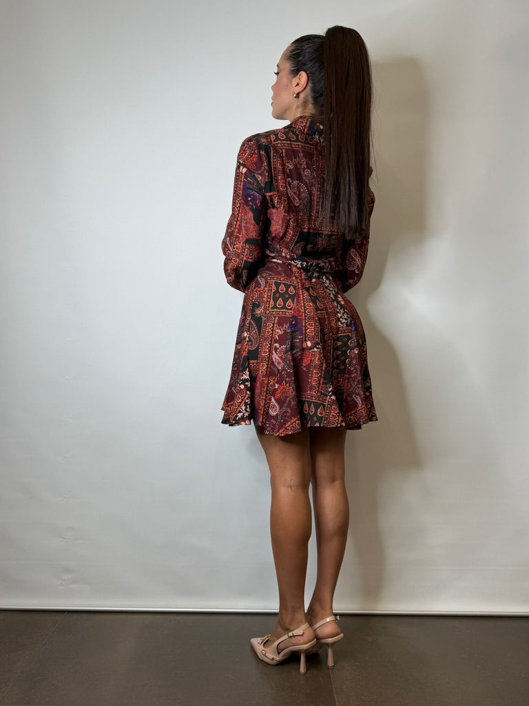 Vestitino tessuto a fantasia taglia s m l colore unico con i bottoncini morbidi ai fianchi e fisciacca in vita
